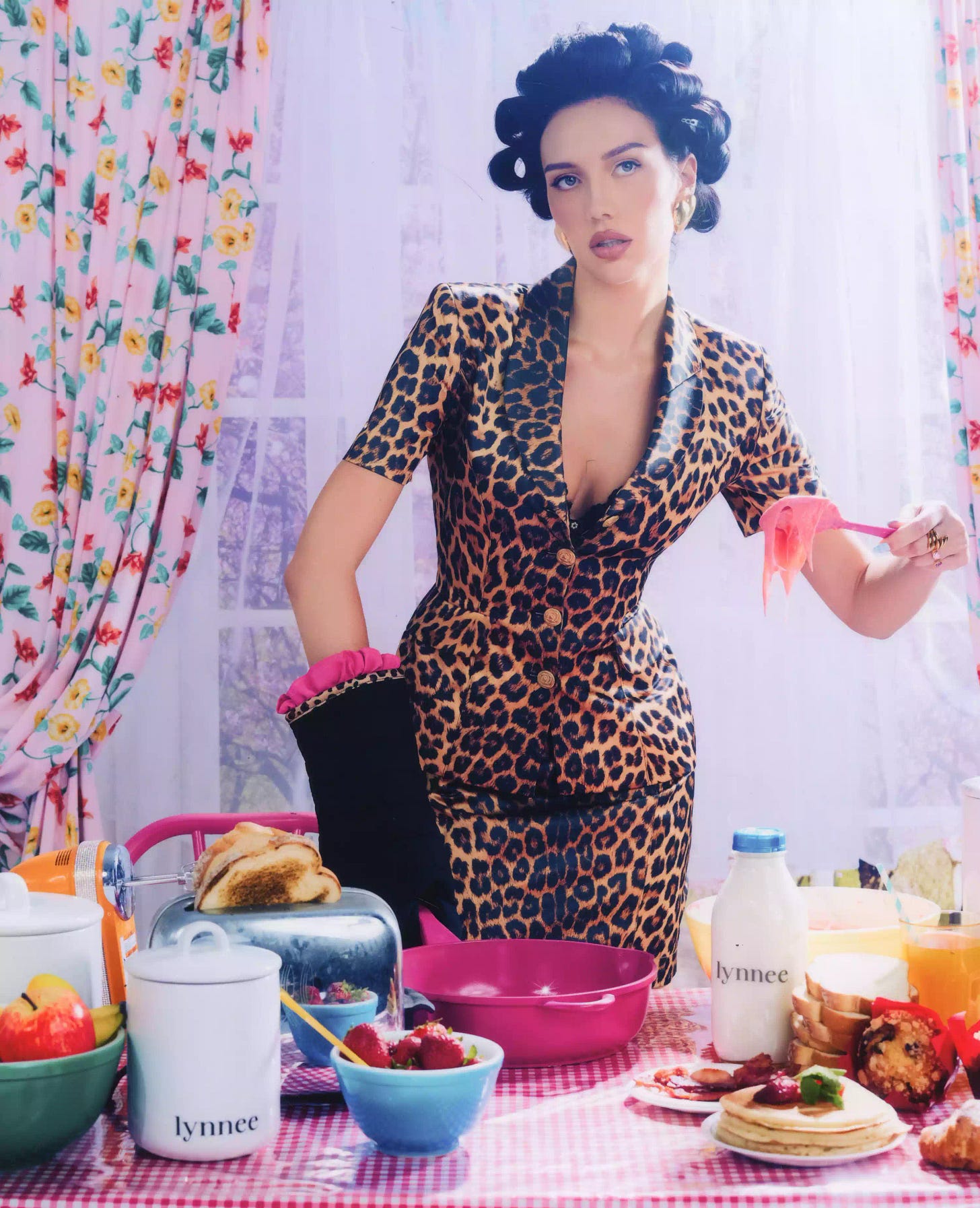 Fashion-forward girls with a similar breed of domesticity have flocked in droves to TikTok, Instagram, and YouTube. It’s become such a popular genre that it’s often spoofed in magazine editorials (like this one, starring Amelia Gray Hamlin for Pop) and is a prominent concept in ad campaigns; Hailey Bieber’s Rhode Skin, for instance, often features aesthetically pleasing food alongside models in its marketing imagery, from elaborate cakes to freshly baked cinnamon rolls. I’ll admit, I’m not much of a chef, and therefore don’t seek out recipe-related content. But this year more than ever, it found me, making it clear that the race to fill the Martha Stewart-sized hole in the influencer market is on.